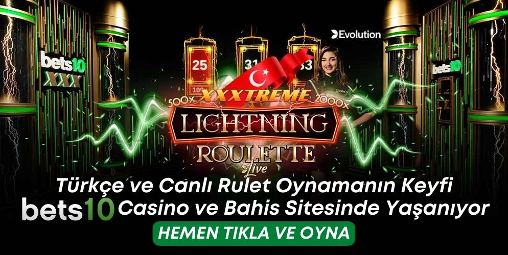 Bets10 XXXtreme Lightning Roulette ile Yeni Bir Heyecan Bets10 casino ve bahis sitesinde seni bekliyor. Tamamı Türkçe ve Bets10 sitesine özel olan bu rulet masası tüm kullanıcılara kazandırmak için açıldı. Üstelik dört hafta boyunca Bets10 XXXtreme Lightning Roulette masasın ödül yağmuru olacak. Hemen Bets10 XXXtreme Lightning Roulette masasını denemek ve rulet oyununu doya doya kendi dilinde oynamak için resme tıkla.