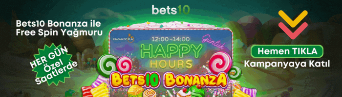 Bets10 bahis ve casino sitesi ile Free Spinleri yap, kazancına kazanç kat. Her gün belirlenen saatlerde sadece Bets10 sitesine özel Bets10 Bonanza slotunda geçerli tamı tamına 50 adet Freespin elde edebilirsin. Bilgileri almak için hemen resme tıkla ve kampanya sekmesi altında Bets10 Bonanza kampanyasına katıl.
