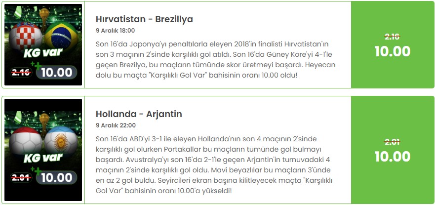 Sizi mahcup etmeyecek bir firma olduklarını üzerine basa basa ifade etmek isteriz ve bugüne kadar yaptığımız araştırmalarda da herhangi bir sorun ya da sıkıntı ile karşı karşıya gelmedik! Yer aldığınız andan itibaren ne kadar öz verili ve ne kadar kıymetli bir aile olduklarını daha net bir şekilde fark edeceksiniz. Size önem veren bu aile ile devam ettiğiniz takdirde amatörce sorunlar ile karşı karşıya gelmeyeceğinizin sözünü de veriyorlar. Hemen Bets10 yeni adresi ile siteye erişim sağlayın ve üyelik işlemlerini tamamlayın. Dünya Kupası ve tüm sezon boyunca devam eden 10 oran kampanyasından ve daha bir çoğundan yararlanmaya başlayın.