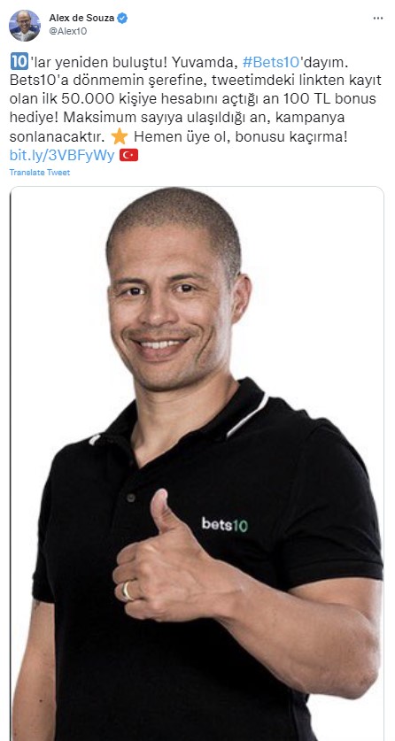 Alex ve Bets10 yeni bir işbirliğine imza attı. Alex yaptığı paylaşımla birlikte bu işbirliğini duyurdu. Resmi twitter adresi üzerinden yuvama geri dönüyorum paylaşımında bulunan Alex; önce Fenerbahçe taraftarlarını çok heyecanlandırdı. Ancak daha sonra konunun Fenerbahçe değil, Bets10’la alakalı olduğu anlaşıldı. Bets10’la anlaşma sağladığını duyuran Alex; yeni kayıt olan ilk 50.000 kişinin 100 lira bedava bahisten yararlanmasına da olanak sağladı.